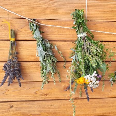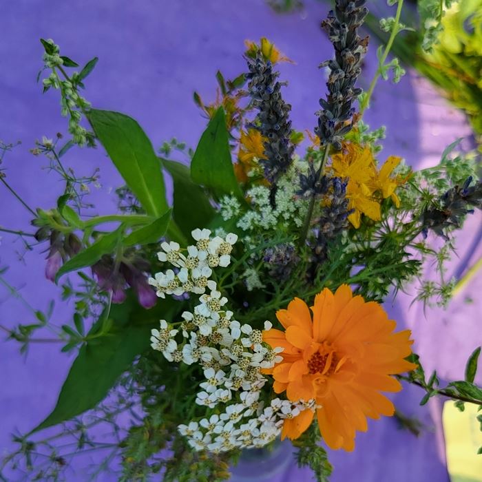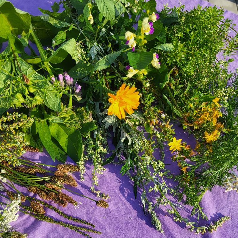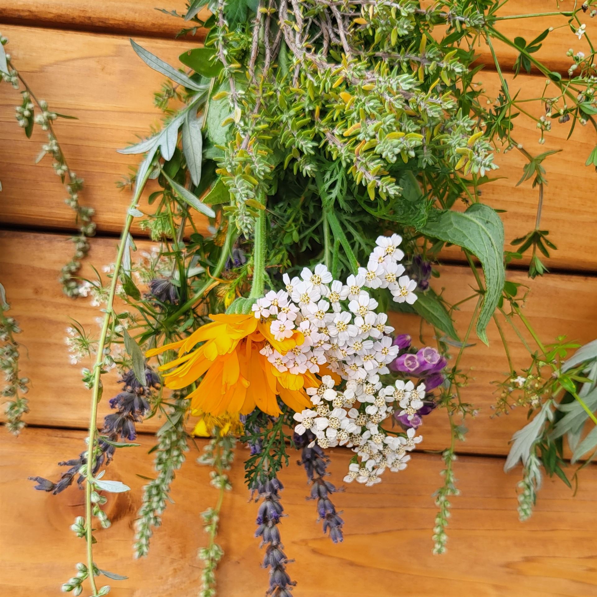 Ringelblume, Beifuß, Johanniskraut, Ackerschachtelhalm, Labkraut, Wilde Möhre, Lavendel, Beinwell, Thymian, Hexenkraut, Spitzwegerich, Salbei