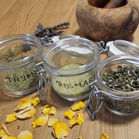 Ringelblume, Lavendel, Thymian, Spitzwegerich, Gundermann, Labkraut